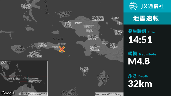 | 震源地 | インドネシアのAmahaiから東196kmの地点 |