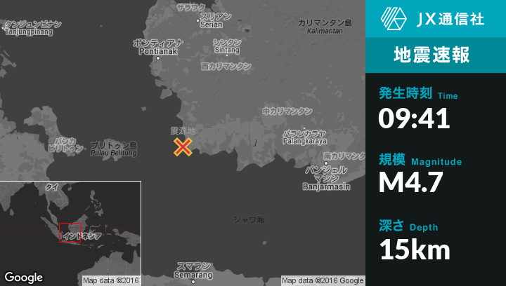 | 震源地 | インドネシアのManismataから西南西104kmの地点 |