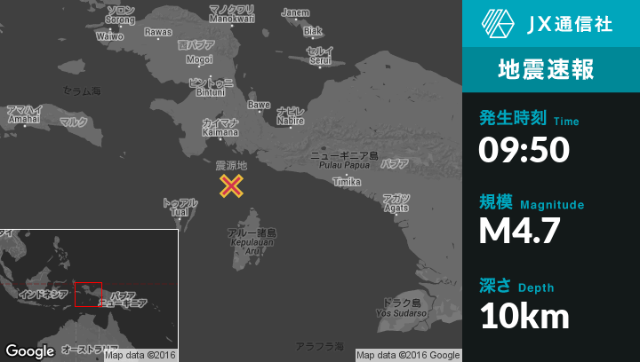 6月25日 09:50頃、インドネシアのDoboから北120kmの地点で地震がありました。