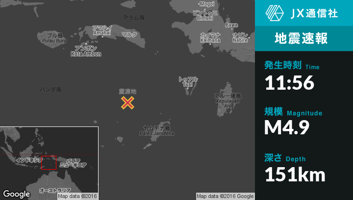 | 震源地 | インドネシアのSaumlakiから北西241kmの地点 |