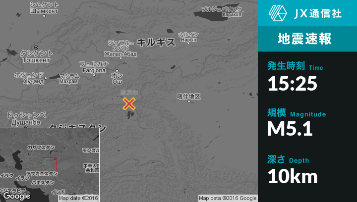 | 震源地 | キルギスのSary-Tashから南南東27kmの地点 |
