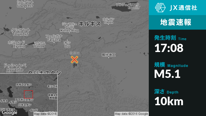| 震源地 | キルギスのSary-Tashから南南東32kmの地点 |