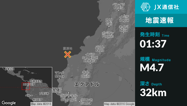| 震源地 | エクアドルのPropiciaから北西48kmの地点 |