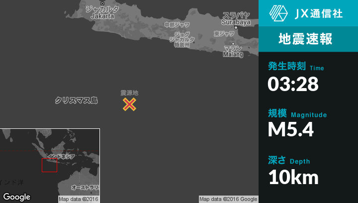 | 震源地 | クリスマス島のFlying Fish Coveから東257kmの地点 |