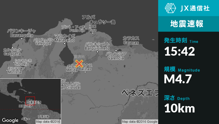 7月15日 15:42頃、ベネズエラのValeraから西北西7kmの地点で地震がありました。