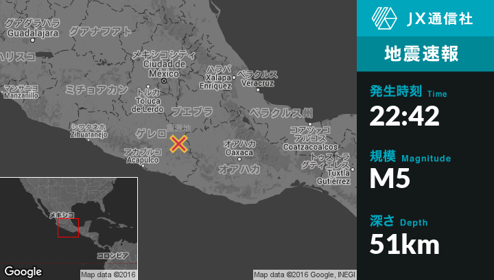 | 震源地 | メキシコのTlapa de Comonfortから北西16kmの地点 |