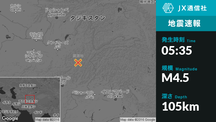 | 震源地 | アフガニスタンの`Alaqahdari-ye Kiran wa Munjanから西37kmの地点 |
