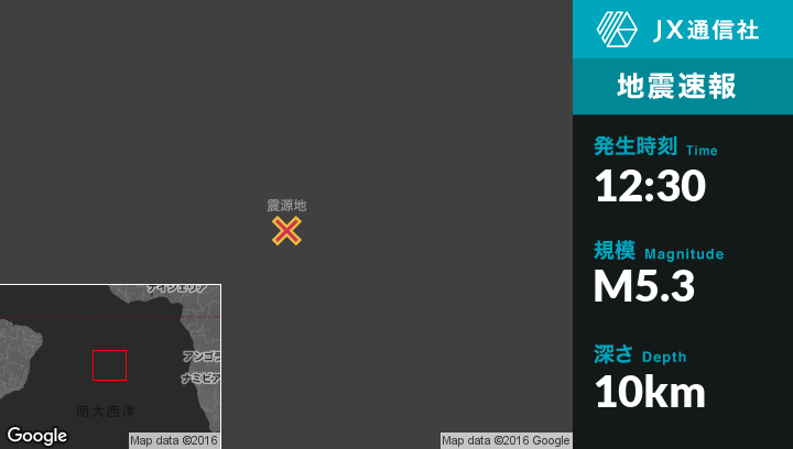 | 震源地 | セントヘレナのJamestownから西806kmの地点 |