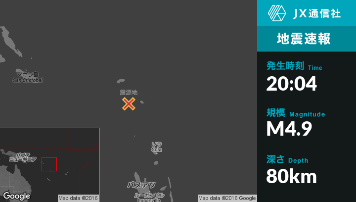 | 震源地 | ソロモン諸島のLataから南南東110kmの地点 |
