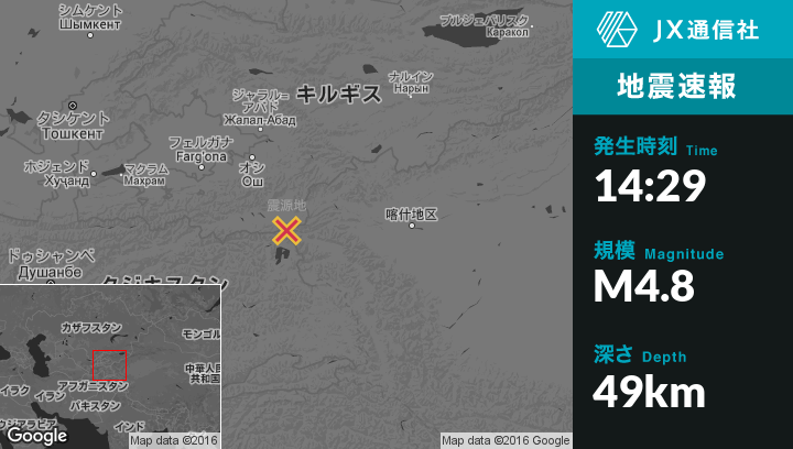 | 震源地 | キルギスのSary-Tashから南東34kmの地点 |