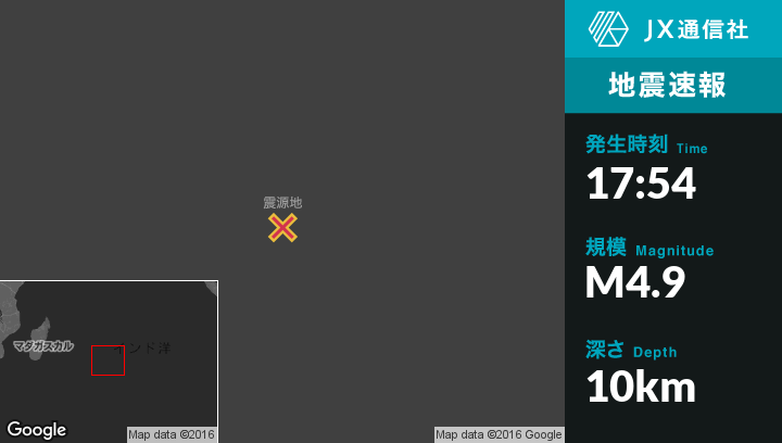 | 震源地 | モーリシャスのIle Rodriguesから南東890kmの地点 |