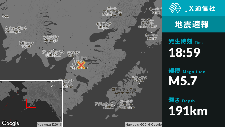 | 震源地 | アラスカのKing Salmonから南南東26kmの地点 |