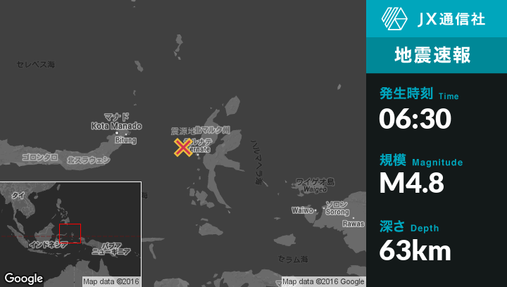 | 震源地 | インドネシアのKota Ternateから北西64kmの地点 |
