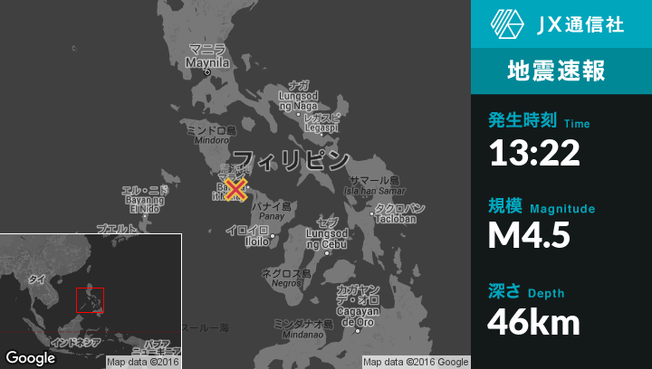 | 震源地 | フィリピンのCaluyaから東北東13kmの地点 |
