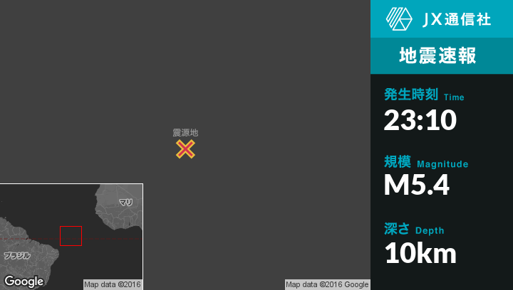 | 震源地 | ブラジルのFernando de Noronha (Distrito Estadual)から北東649kmの地点 |
