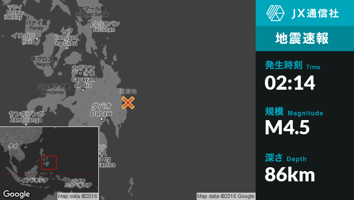 | 震源地 | フィリピンのSanta Mariaから東20kmの地点 |