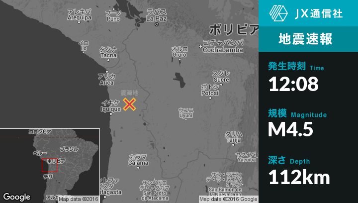 | 震源地 | チリのIquiqueから東北東102kmの地点 |
