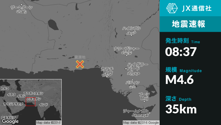 7月26日 08:37頃、パキスタンのOrmaraから北東76kmの地点で地震がありました。