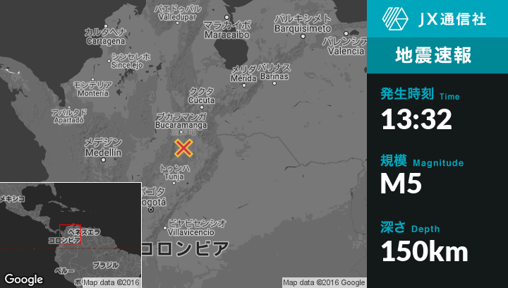 | 震源地 | コロンビアのAratocaから北北西8kmの地点 |
