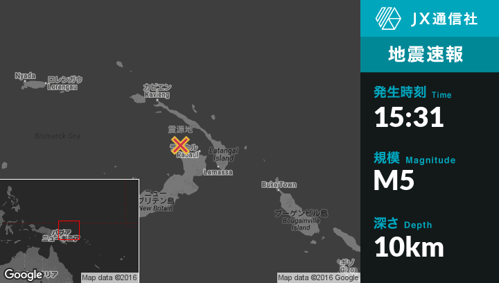 | 震源地 | パプア ニューギニア独立国のRabaulから西北西78kmの地点 |