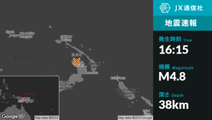| 震源地 | パプア ニューギニア独立国のRabaulから西北西72kmの地点 |