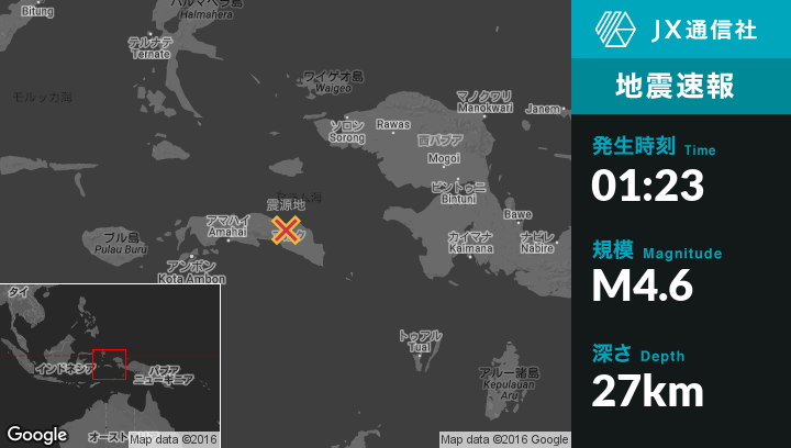 | 震源地 | インドネシアのAmahaiから東北東134kmの地点 |
