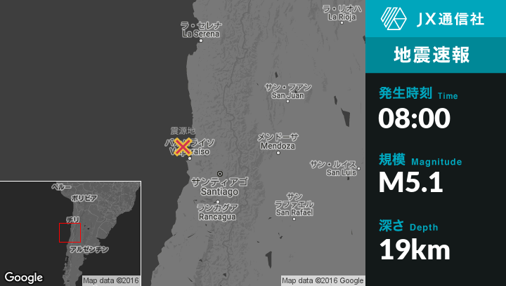 | 震源地 | チリのValparaisoから北北西49kmの地点 |