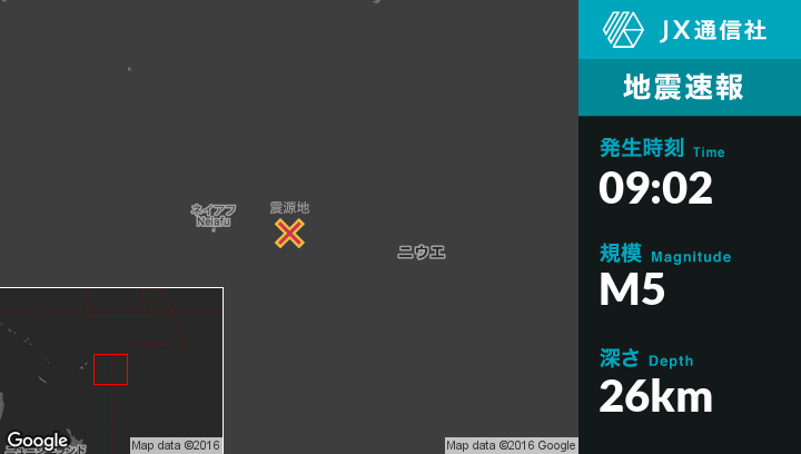 7月27日 09:02頃、トンガのNeiafuから東157kmの地点で地震がありました。