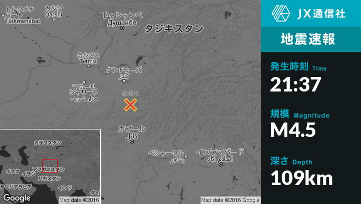 | 震源地 | アフガニスタンのNahrinから南南東9kmの地点 |