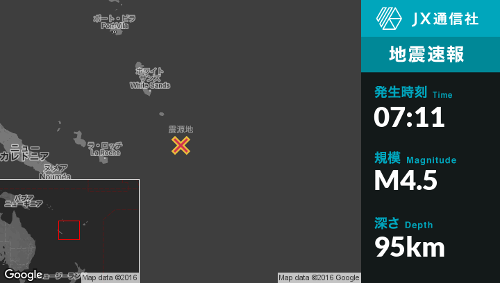| 震源地 | バヌアツのIsangelから南東200kmの地点 |