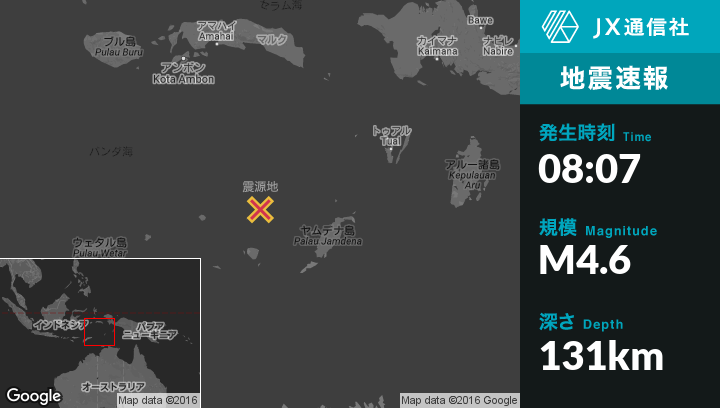 | 震源地 | インドネシアのSaumlakiから北西200kmの地点 |