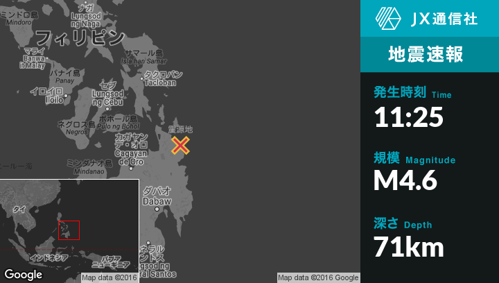| 震源地 | フィリピンのCortesから北2kmの地点 |