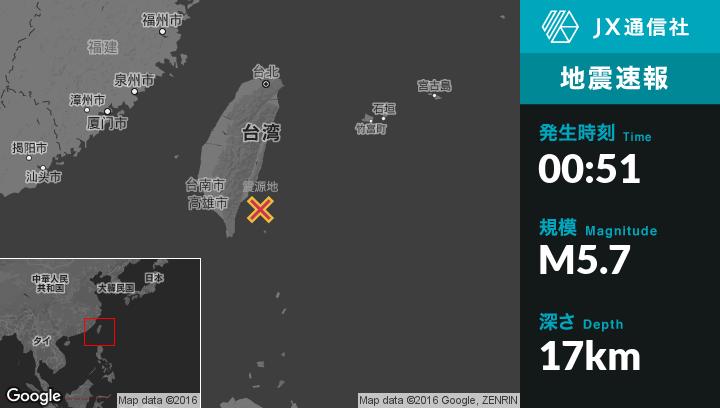 | 震源地 | 台湾のTaitung Cityから東南東34kmの地点 |