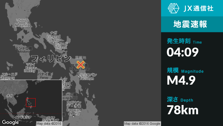 | 震源地 | フィリピンのMaslogから北北西13kmの地点 |