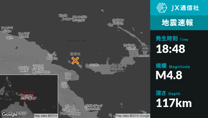 | 震源地 | パプア ニューギニア独立国のFinschhafenから北北西168kmの地点 |