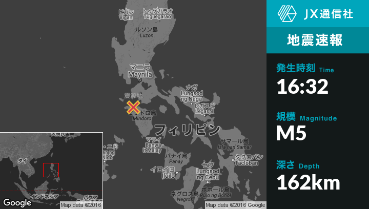 10月08日 16:32頃、フィリピンのWawaから北北西14kmの地点でM5の地震がありました。