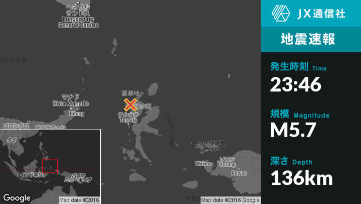 | 震源地 | インドネシアのTobeloから西60kmの地点 |