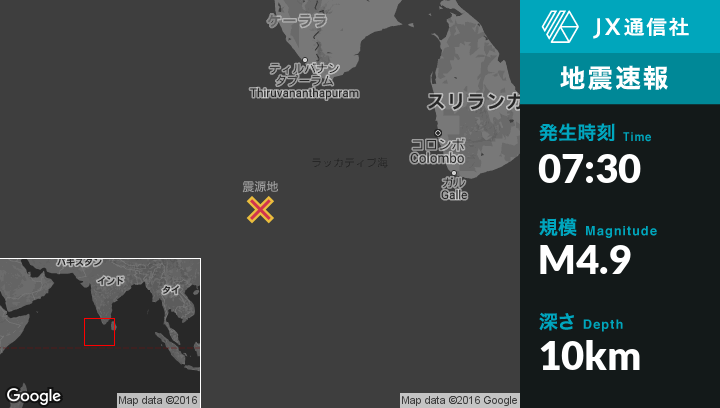 | 震源地 | モルディブのNaifaruから東286kmの地点 |