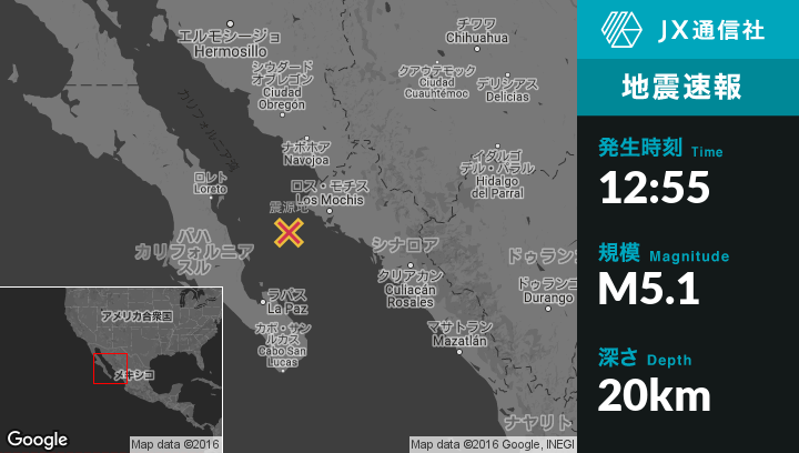 | 震源地 | メキシコのHiguera de Zaragozaから南西70kmの地点 |