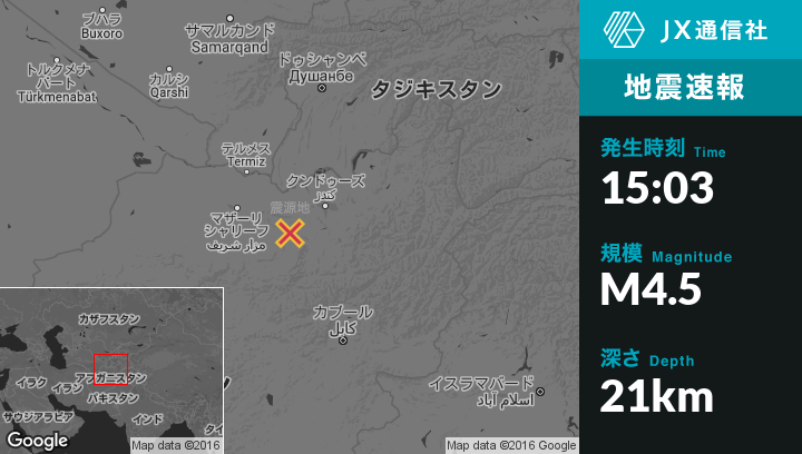 | 震源地 | アフガニスタンのAibakから北東18kmの地点 |