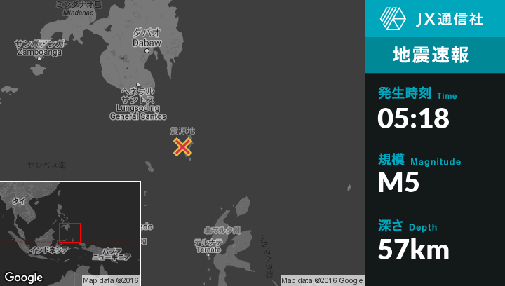 | 震源地 | フィリピンのSaranganiから南東170kmの地点 |