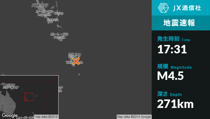| 震源地 | バヌアツのIsangelから北東56kmの地点 |