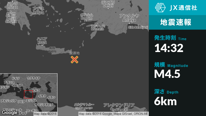 | 震源地 | ギリシャのPalaikastronから南南東59kmの地点 |
