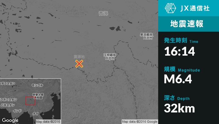 10月17日 16:14頃、中国のDartangから北東135kmの地点でM6.4の地震がありました。