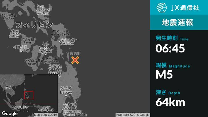 | 震源地 | フィリピンのSan Isidroから東北東8kmの地点 |