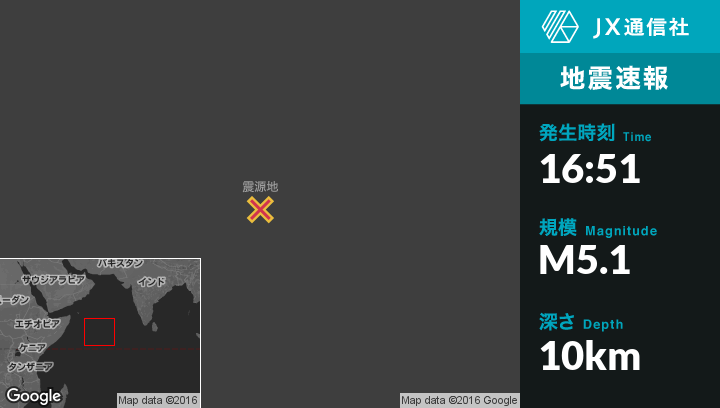 10月18日 16:51頃、イエメンのTamridaから南東1122kmの地点でM5.1の地震がありました。