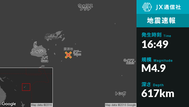 | 震源地 | フィジーのLambasaから南南東207kmの地点 |