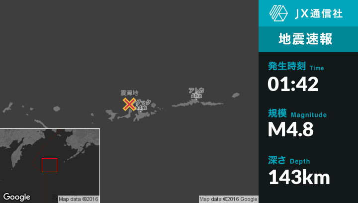 | 震源地 | アラスカのAdakから北西46kmの地点 |