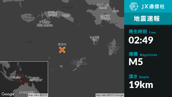 | 震源地 | インドネシアのSaumlakiから北西250kmの地点 |