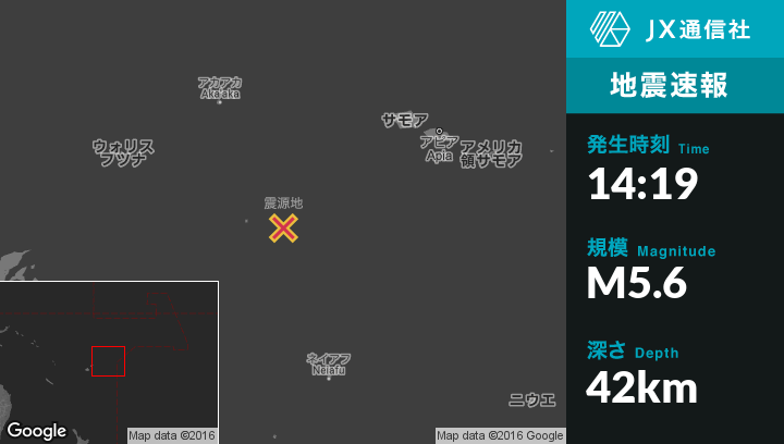 | 震源地 | トンガのHihifoから西北西129kmの地点 |